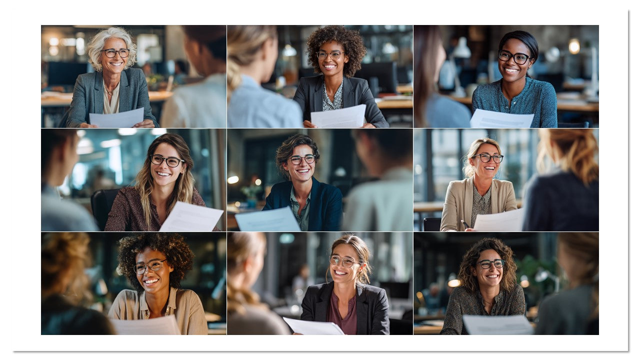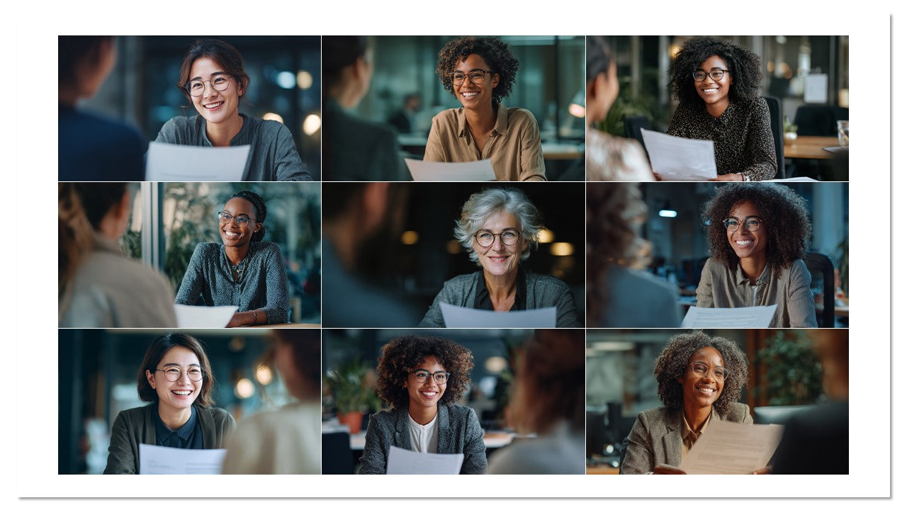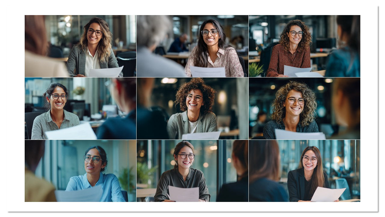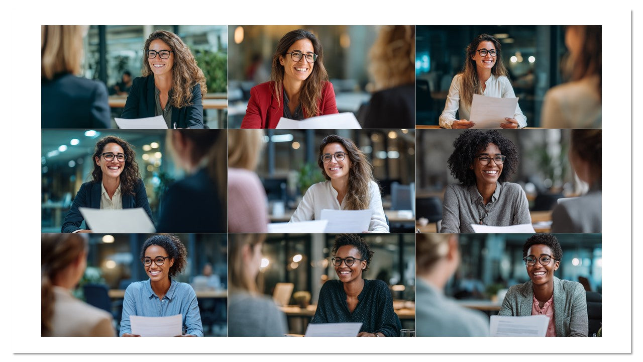 Coleção com 100 imagens profissionais de entrevistas e cenas de RH em ambientes reais de escritório. Ideal para recrutamento, páginas de carreira, employer branding, anúncios, blogs e apresentações. Estética moderna, diversidade e sorrisos que geram empatia e cliques.