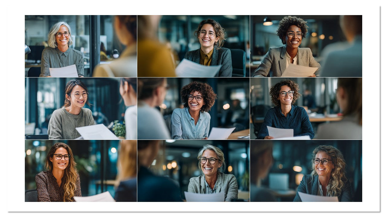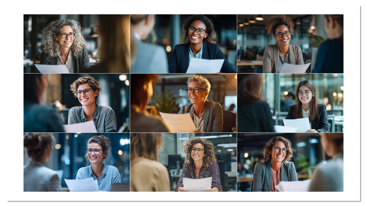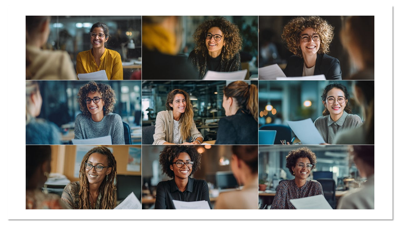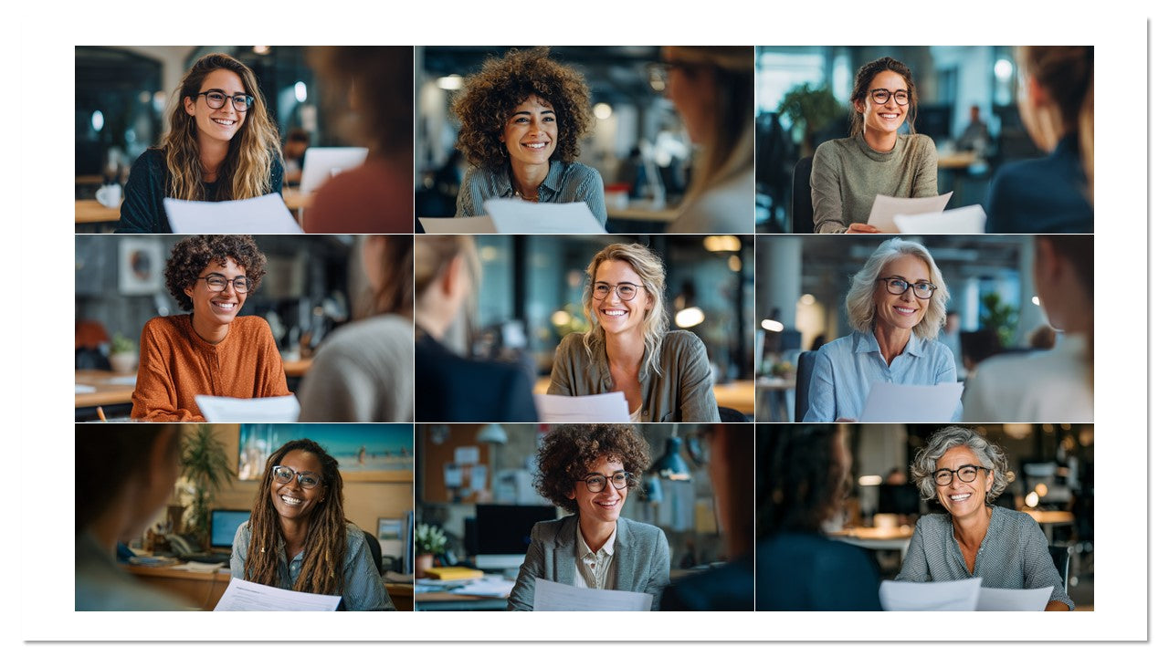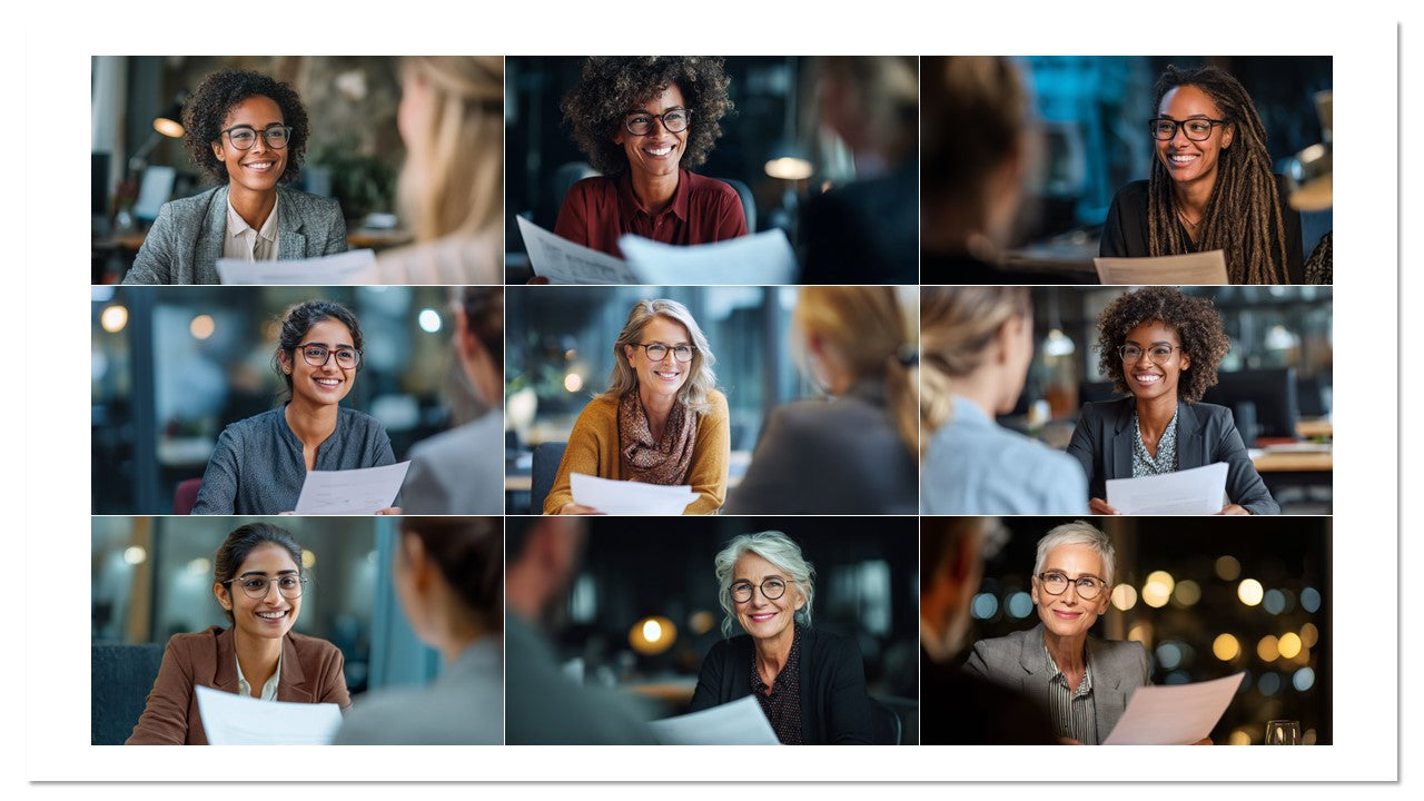 Coleção com 100 imagens profissionais de entrevistas e cenas de RH em ambientes reais de escritório. Ideal para recrutamento, páginas de carreira, employer branding, anúncios, blogs e apresentações. Estética moderna, diversidade e sorrisos que geram empatia e cliques.