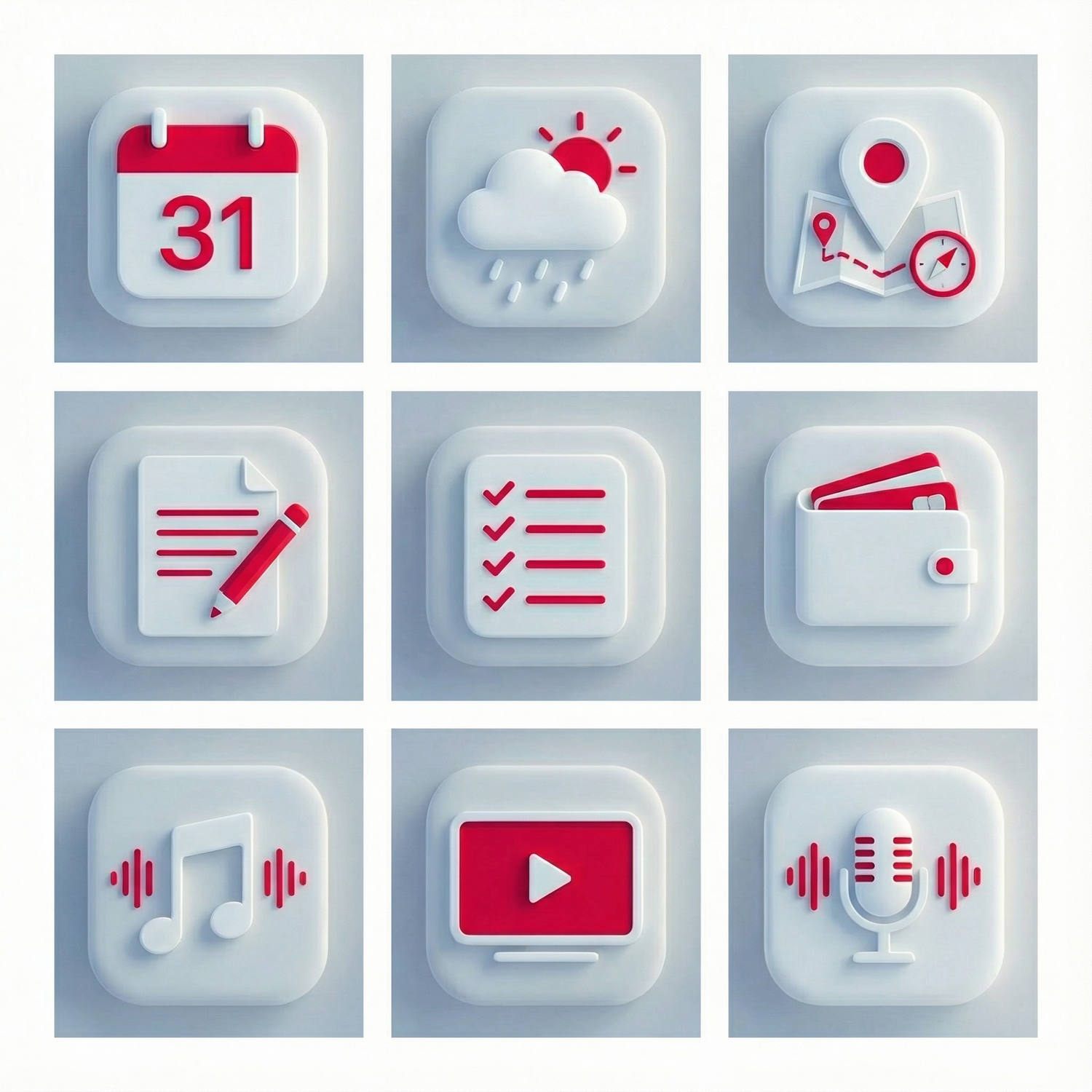 Estética Clean Minimalista: Ícones 3D Vermelho & Branco para o Teu iPhone