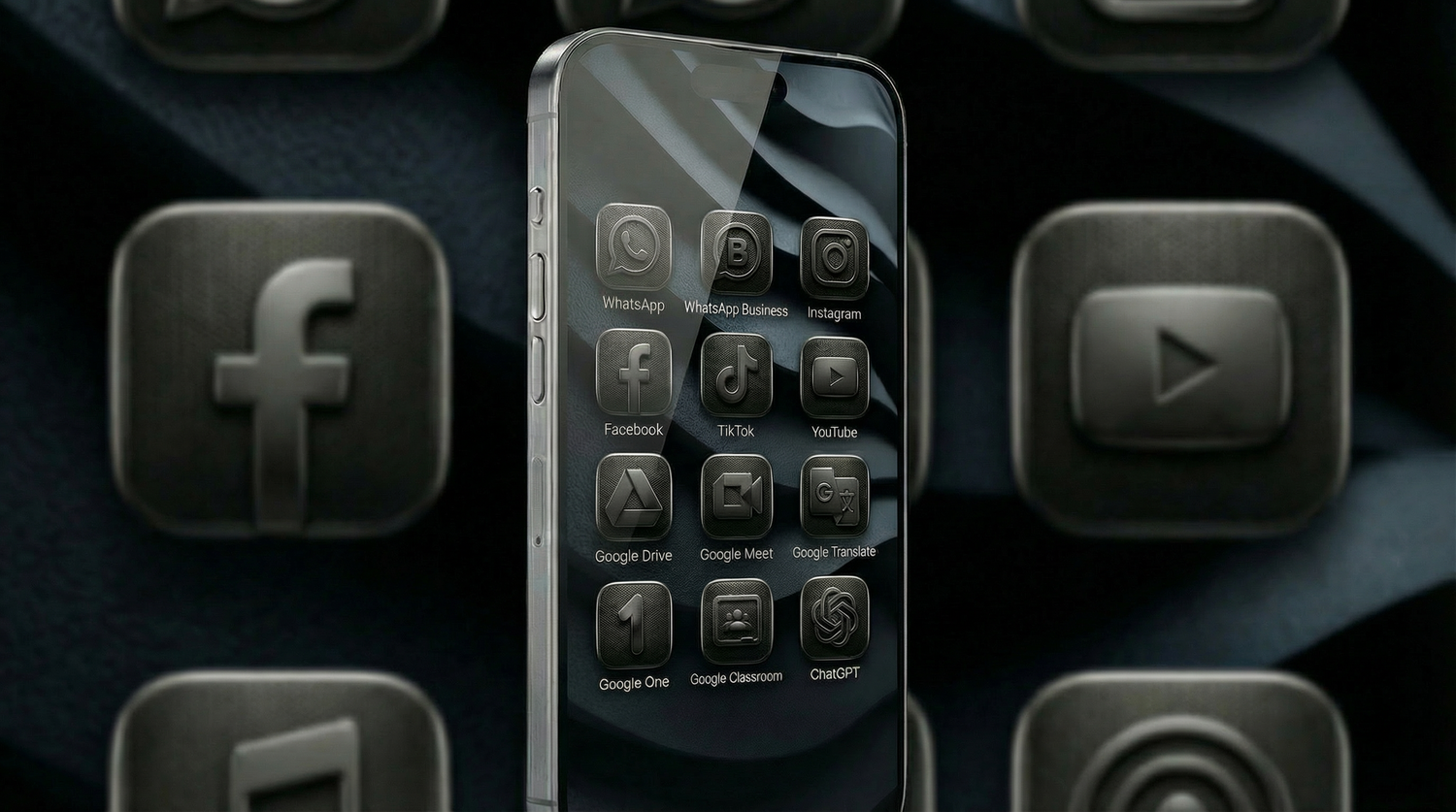 Estética Industrial Dark: Ícones Metálicos 3D para o Teu Smartphone